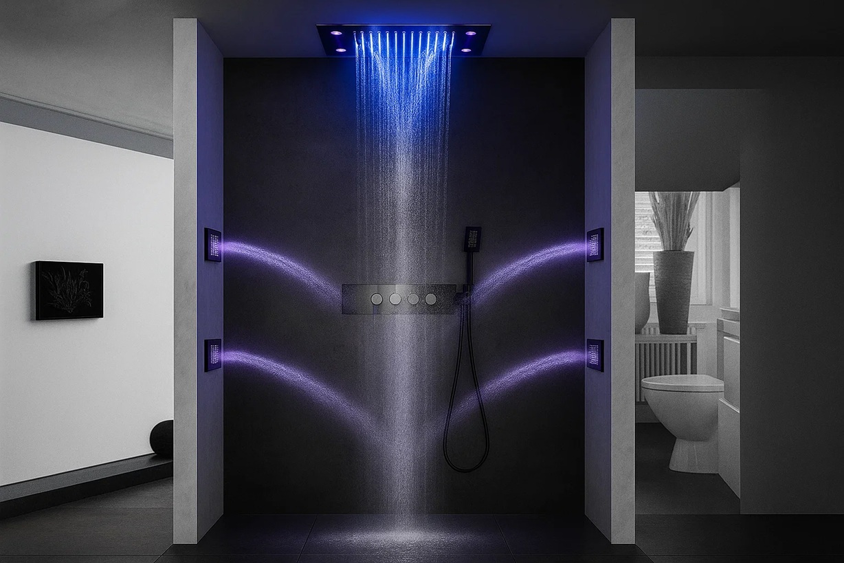Premium U.S. brand delivering luxury shower panels, LED rainfall systems, and spa-inspired fixtures with exquisite finishing.